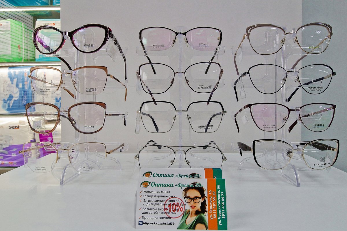 Салон оптики Оптика Фрейм39 предлагает возможность взглянуть на мир во всей полноте его ярких красок. Не сомневайтесь, здесь вы всегда можете приобрести подходящие очки, проверить свое зрение и задать все интересующие вас вопросы оптику-консультанту. Оптика Фрейм39 производит очки для зрения только с сертифицированными линзами от мировых производителей. Товары и оборудование в оптике лицензированы, имеют все требуемые сертификаты качества. Не рискуйте своим зрением, приобретая очки в сомнительных салонах или через интернет.